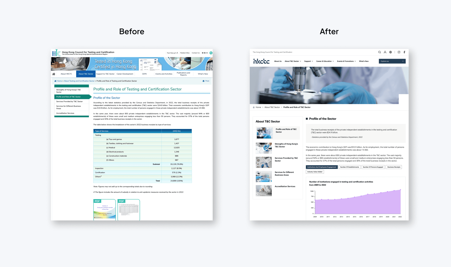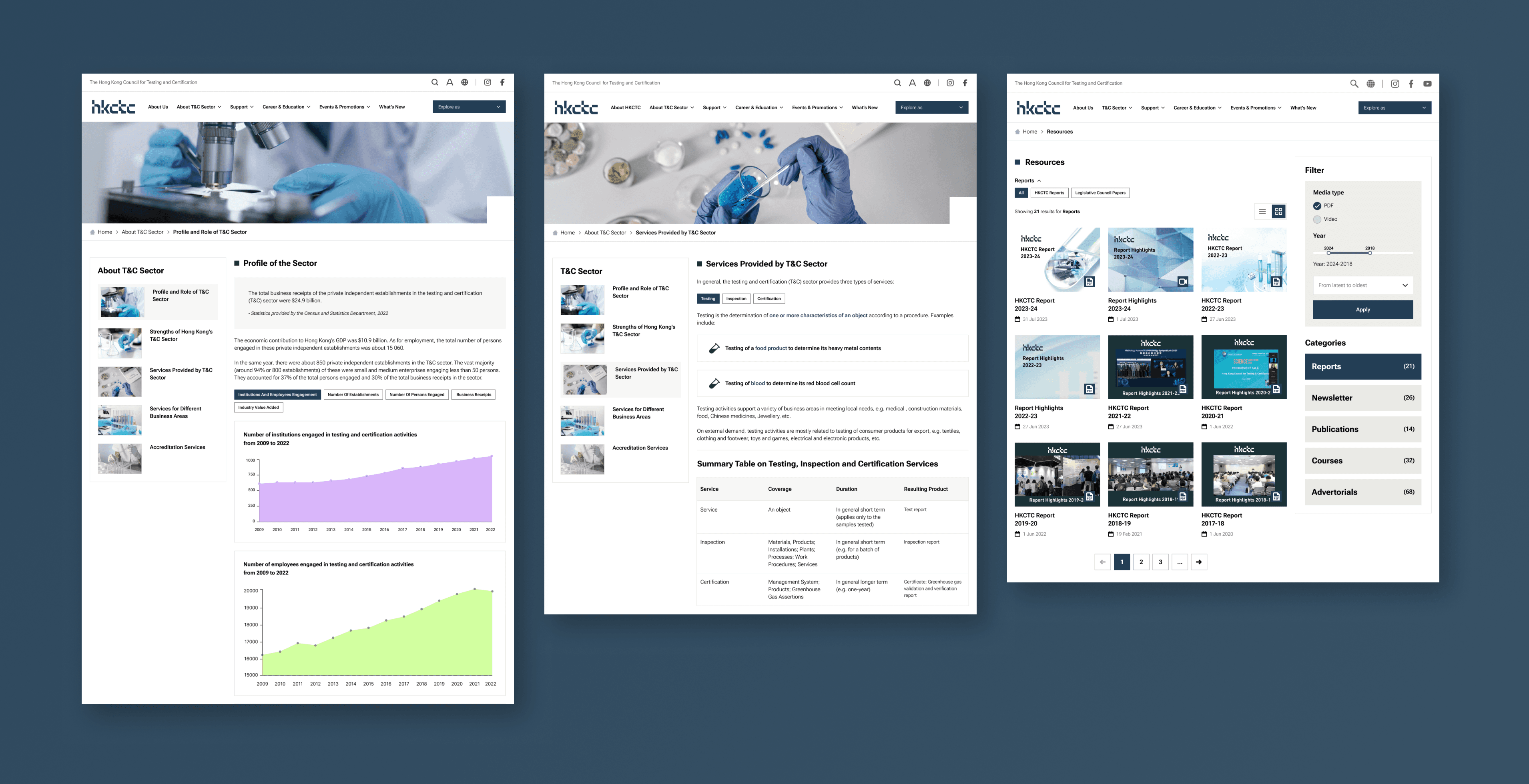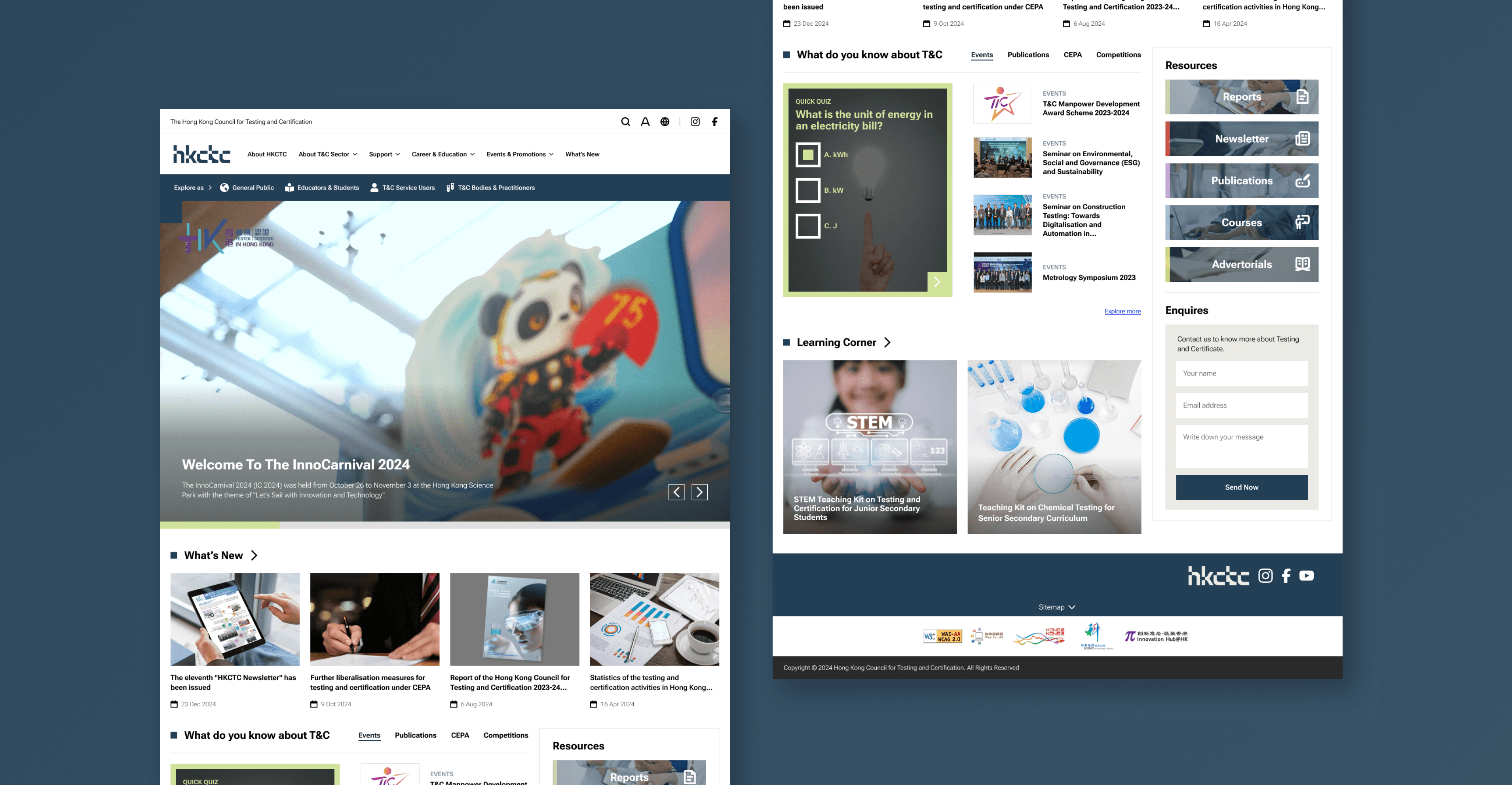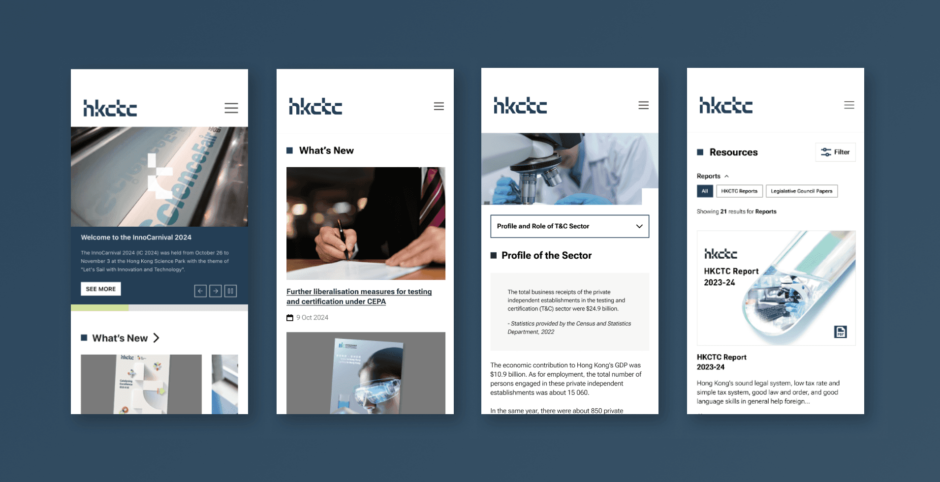 In early 2024, the Hong Kong government launched a competitive public tender to revitalize The Hong Kong Council for Testing and Certification (HKCTC) brand through a complete website overhaul. The goal was to better align their digital presence with innovation, trust, and a forward-thinking ethos. Our team was awarded the 9-month contract, and as the project's core UX/UI designer, I was tasked with solving the key usability and accessibility challenges. This case study documents the design process, from identifying the core problems to delivering the final, impactful solution.
